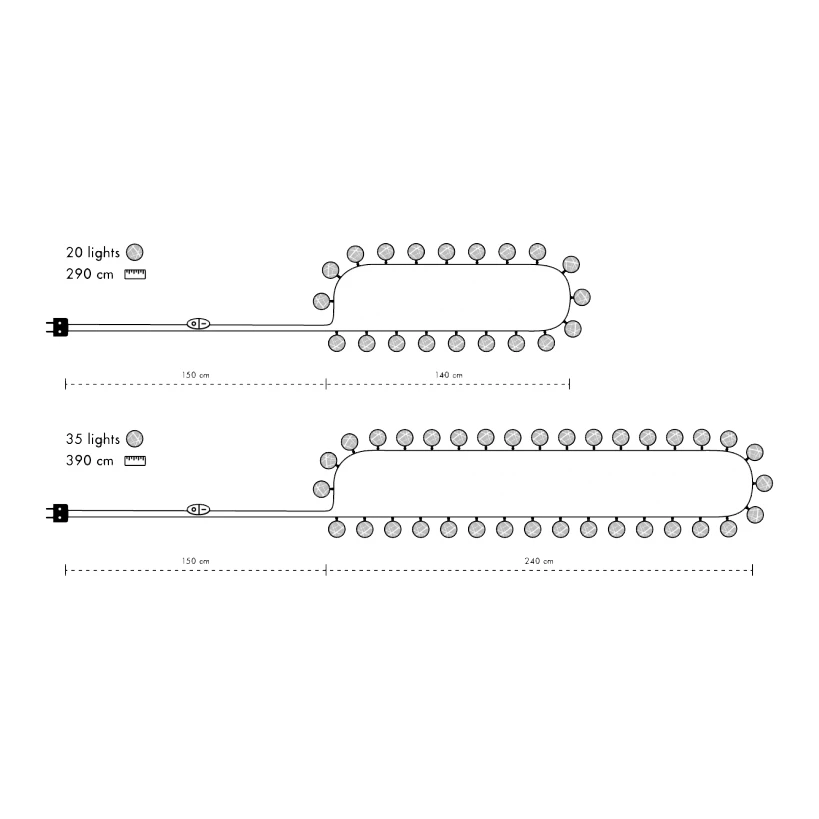 - Más informaciónReemplaza las bombillas defectuosas lo antes posible para evitar errores de tensión en la guirnalda de luces.